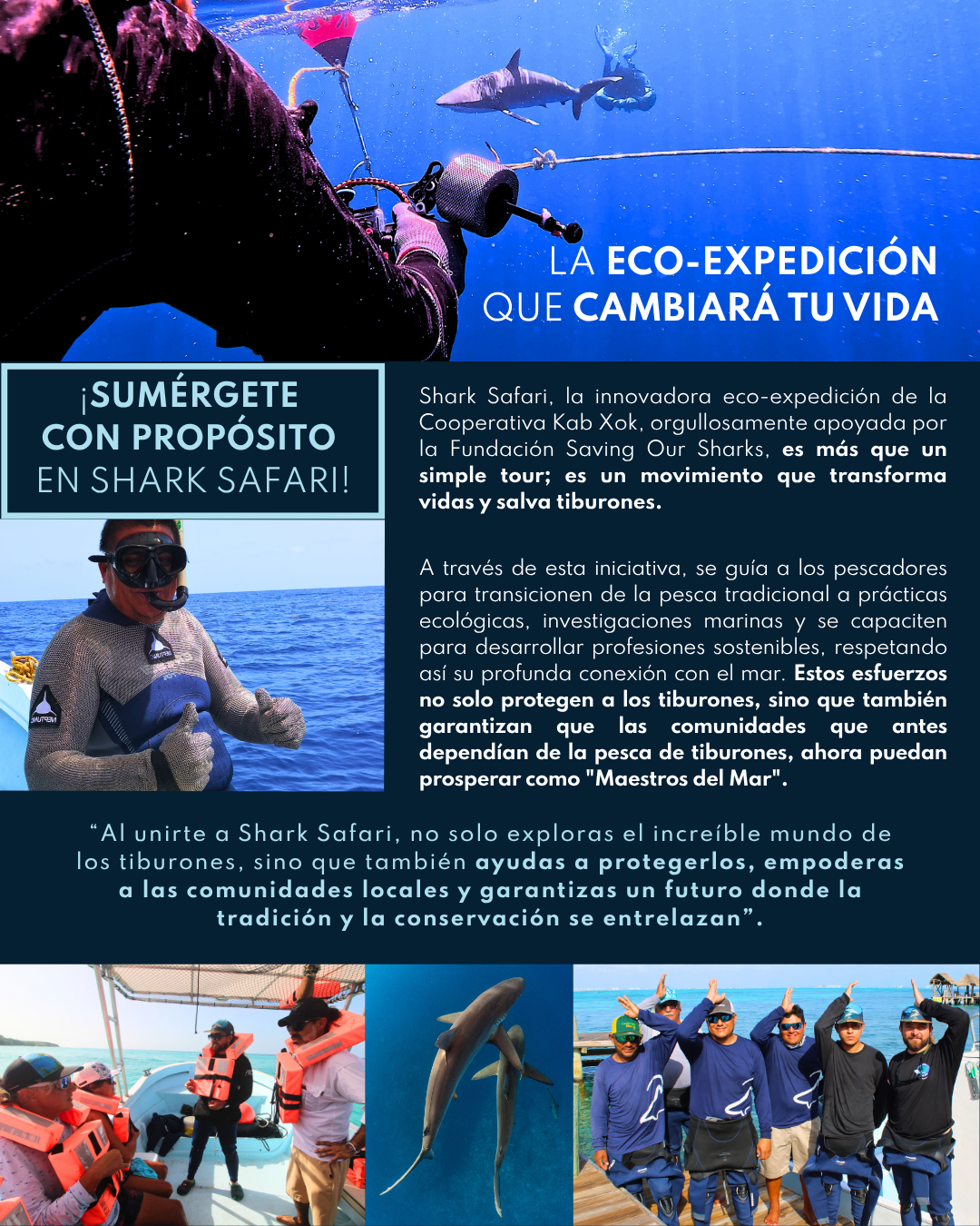 What once seemed an impossible dream is now a tangible reality in the Mexican Caribbean. With determination, vision, and your support, the former shark fishermen are embarking on a bold new chapter—one that honors their heritage, protects their oceans, and redefines what it means to coexist with nature.