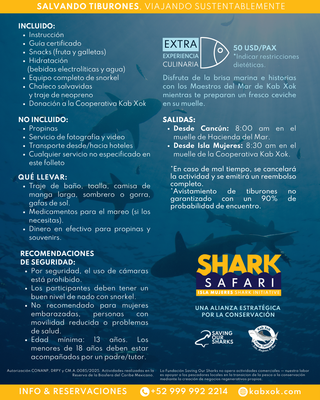 At the Foundation Saving Our Sharks, We are proud to present more than just a marine tourism initiative. Shark Safari is a movement: a meaningful journey from exploitation to protection, from survival to responsible management. And now, we invite you to dive in.